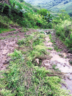 连日的雨水过后,通往撒营盘镇康荣村弄木奔小组唯一的一条山路愈发泥泞不堪,沿路山体多处滑坡,村民用树叶铺出一条小径。沿着这条“绿色小径”,由经开区管委会主任李河流带队的经开区扶贫工作队来到贫困户家中。“这条泥巴路得修,不然不安全,而且太影响生产生活了。”李河流边走边说,语气坚定。