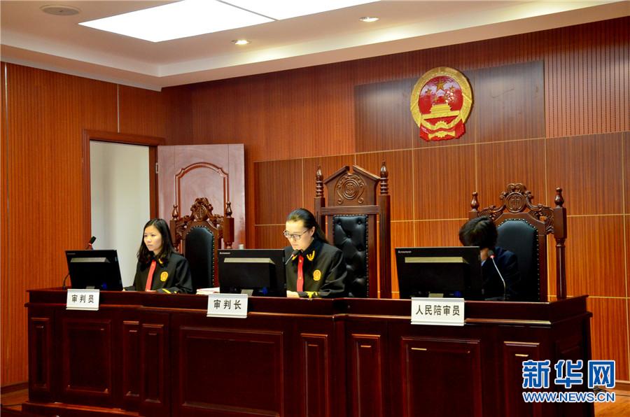 昆明市呈贡区法院28日开庭审理云南省首例代替考试罪案,图为合议庭组成人员。新华网 赵汉斌 摄