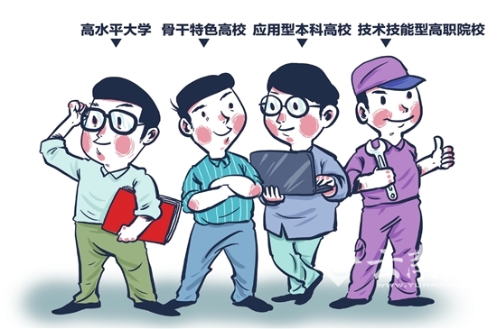 高水平大学主要培养具有较强理论基础、实践能力和创新能力的高素质人才。骨干特色高校主要培养具有较强理论基础、实践能力和创新能力的专业型高素质人才。应用型本科高校主要培养具有一定理论基础、较强实践能力和创新意识的高层次应用型人才。技术技能型高职院校主要培养面向生产、建设、管理、服务一线的高素质技术技能型人才。