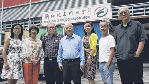 邹璐(右三)与新加坡美术总会部分执委合影(方石煜 摄)
