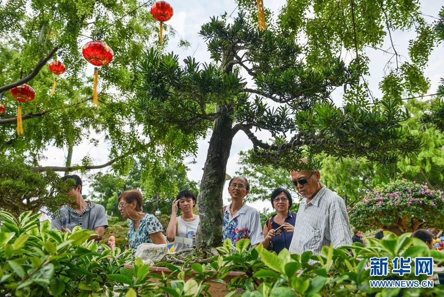 5月29日,在马来西亚行政首都普特拉贾亚,参观者欣赏盆栽。为配合第9届普特拉贾亚皇家花卉园艺节,马来西亚盆景雅石协会自5月27日至6月4日在普特拉贾亚的中国—马来西亚友谊公园举行“国际魔幻盆景展览”,共展出140件国内外盆栽作品。新华社发(张纹综摄)
