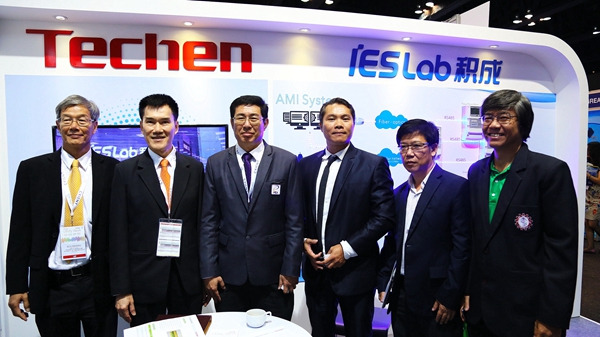 泰国外府电力局及泰国曼谷电力局负责人为参展的中国企业TECHEN和iESLab 站台支持(图片由TECHEN提供)。