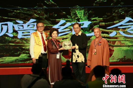 太原舞蹈团团长韩林与马来西亚霹雳州行政议员拿督马汉顺互赠礼物。 胡健 摄