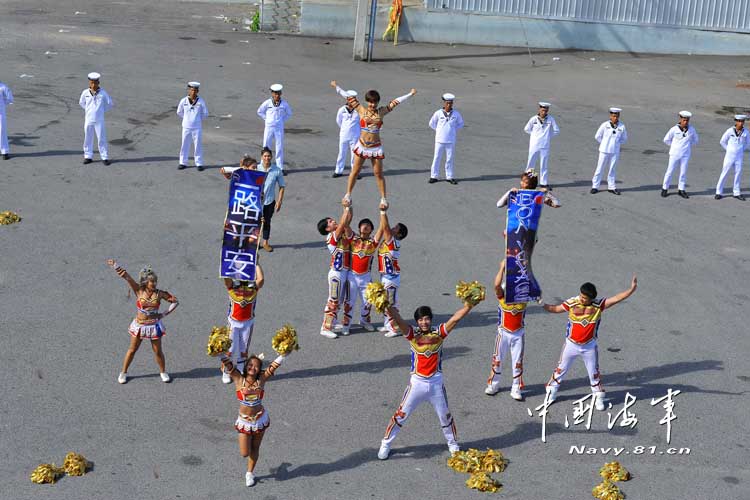 泰方为长白山舰官兵表演民族舞蹈。肖永 摄