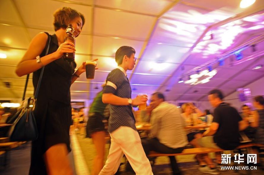 6月16日,人们参加在新加坡摩天轮F1赛道举行的亚洲啤酒节。当日,第八届亚洲啤酒节在新加坡摩天轮F1赛道开幕,酒客能享用超过500种啤酒。 新华社发(邓智炜摄)