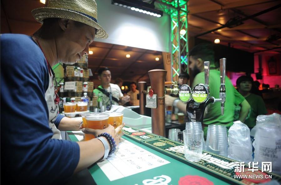 6月16日,人们在新加坡摩天轮F1赛道举行的亚洲啤酒节上选购啤酒。当日,第八届亚洲啤酒节在新加坡摩天轮F1赛道开幕,酒客能享用超过500种啤酒。 新华社发(邓智炜摄)