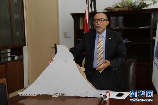4月20日消息,澳大利亚基础建设和交通部长达伦·切斯特20日发表声明称,澳大利亚运输安全局已公布的技术报告证实在莫桑比克发现的两片飞机残片确属马航MH370客机。这张3月3日拍摄的资料照片显示的是,在莫桑比克首都马普托,莫桑比克民航管理局局长若昂·德阿布雷乌在新闻发布会上展示飞机残片。 新华社记者 李晓鹏 摄 图片来源:新华网