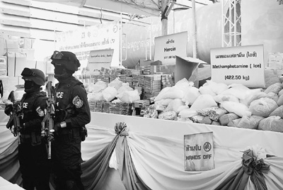 今年6月,泰国有关部门刚刚从“金三角”地区缴获了6亿片冰毒片剂。“冰毒片剂和冰毒晶体是泰国面临的主要毒品威胁,其他威胁还包括从老挝偷运来的大麻、来自南美洲的可卡因,以及主要是将泰国作为中转地运至第三国的海洛因。”泰国司法部麻醉品管制委员会顾问、东盟麻醉品合作中心主任拉差妮功·莎拉斯丽告诉本报记者。