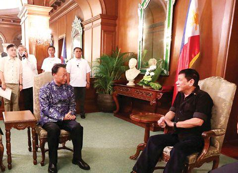 图为菲总统杜特尔特接见中国驻菲大使赵鉴华。
