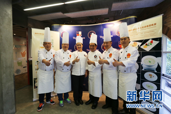 16日,中国美食文化代表团与泰国烹饪协会代表在泰国MSC泰餐厨艺学校切磋烹饪技艺,共同向泰国烹饪学校的师生详细地展示和讲解美食文化。活动中,双方都拿出了自己的看家本领,中方现场制作了“文思豆腐”、“中式元宝虾”、“橘瓣鱼元”3道佳肴,泰方则详细地介绍了泰国名菜“冬阴功汤”和“绿咖喱鸡汤”的做法。