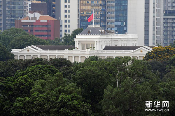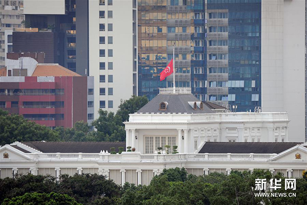 8月23日,新加坡总统府降半旗,悼念新加坡前总统纳丹。新加坡总理公署22日晚发布公告,新加坡前总统纳丹当天晚间9时48分因病去世,享年92岁。新华社发(邓智炜摄)