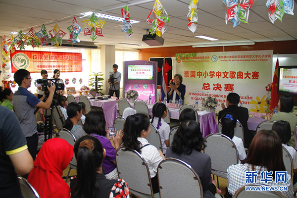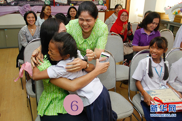 8月31日,2016年泰国中小学汉语既能大赛落幕。图为大赛一等奖消息发布瞬间。(图片由曼松德昭帕亚皇家师范大学孔子学院提供)