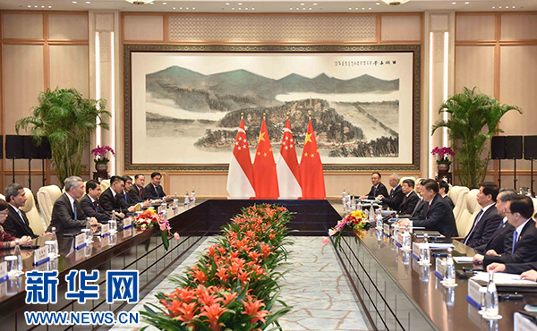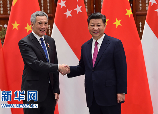 习近平欢迎李显龙来华出席二十国集团领导人杭州峰会。习近平强调,去年中新确立了与时俱进的全方位合作伙伴关系。站在新的历史起点上,双方要做好顶层设计,规划好两国关系发展,保持高层交往,加强沟通,在涉及双方核心利益和重大关切问题上相互理解和尊重。中方重视新方参与“一带一路”建设的积极意愿,愿意将中新重庆战略性互联互通示范项目打造成两国合作新亮点。双方要推动苏州工业园区和天津生态城两大旗舰项目提高质量和水平,深化金融、互联网、信息通信技术、社会治理、执法安全、反恐、反腐败等领域合作。希望新方作为中国-东盟关系协调国,发挥积极作用,推动中国-东盟关系健康稳定发展。中方愿同新方加强在地区和国际机制中的沟通和协调。