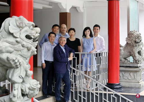 新加坡华族文化中心将设新加坡华族文化贡献奖,评审主席是刘太格(前)。后排左起是文化中心总裁朱添寿、贡献奖工委会副主席何伟山、文化中心董事曾宪民、工委会委员余登凤、工委会主席兼评审胡文雁和文化中心副总裁潘宣辉。(梁麒麟 摄)