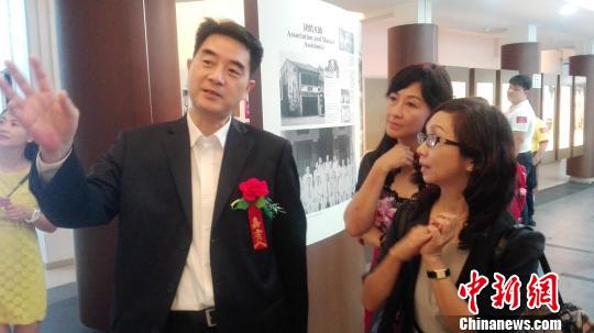 福建省农业厅副厅长姜绍丰和新加坡当地华侨畅叙福建与东南亚情缘。 陈丹妮 摄