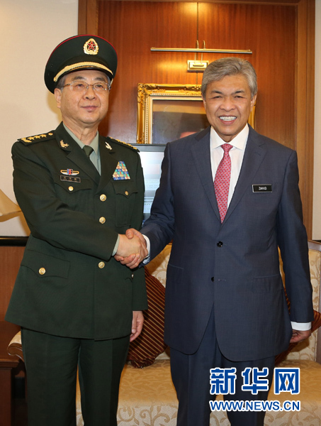 扎希德表示,纳吉布总理前不久成功访华,与习近平主席、李克强总理深入交流,取得丰硕成果,展示了马中两国发展友好关系的坚定立场。习近平主席提出的具有远见卓识的“一带一路”倡议,为马中两国以及本地区互惠共荣发展创造了历史机遇。近年来,两国政府在反恐、打击国际犯罪、国防工业合作等领域开展了卓有成效的交流合作。马方愿与中方共同努力,进一步深化两国两军各领域合作,推动马中全面战略伙伴关系不断迈上新台阶。