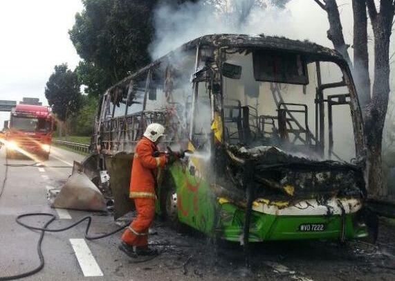 大马旅游大巴着火烧毁 30中国旅客逃生