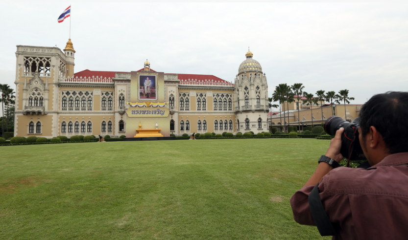 泰国新国王哇集拉隆功的画像日前被安装在政府大楼上。(网页截图)