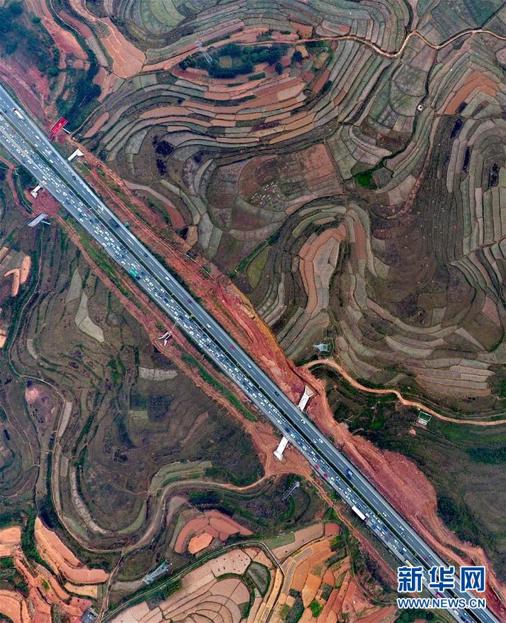 2月2日,广西柳南高速六景路段,车辆排成长龙。当日是春节长假的最后一天,广西各地迎来返程车流高峰。 新华社记者 黄孝邦 摄