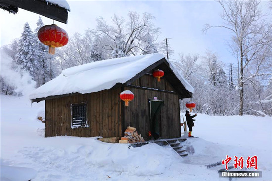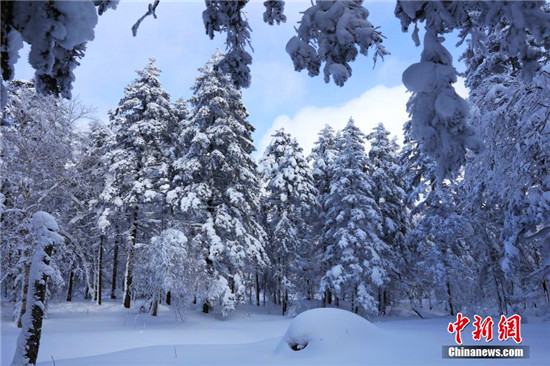 图为游客穿越林海雪原。中新社记者 于琨 摄