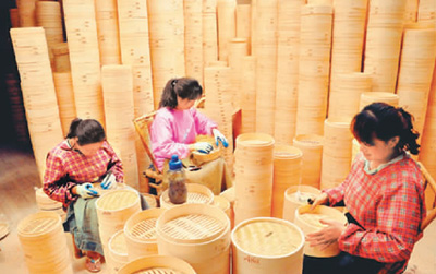 福建省宁德市蕉城区虎贝乡黄家村属于近海山区。这里山岭连绵,潮湿雾多,气候润湿,尤其适合柳杉和毛竹的生长。丰富的林木资源,为虎贝黄家蒸笼提供了充足的原材料。黄家蒸笼是黄家村祖传的传统工艺产品,采用质地疏松、轻软细致的柳杉、毛竹、水藤等特殊材料制作,外形美观、触感细腻,能让饭食保持一股特有的清香味道,久置不馊。因此,“虎贝黄家蒸笼”在闽东备受青睐。作为民间手工艺的技术内涵,黄家蒸笼始终保持着人与自然、自然与材料、材料与技术的连续关系。黄家蒸笼在创制、完善过程中自始至终包含了工匠对材料的认识和利用,显示出经验理性的意义和光彩。