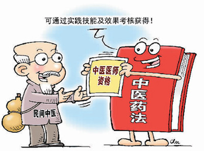 一直以来,中国的中医里有很多是民间中医从业人员。他们的技术多是通过师傅们口传心授,很多人并没有经过标准化的技能考试;另一方面,他们中绝大多数具备一定的临床技能和经验,为基层百姓提供了必要的中医药服务,但现有医师资格考试难以评价其真实水平。为此,国家卫生计生委副主任、国家中医药管理局局长王国强说:“中医药法在充分考虑医疗安全风险的基础上,对师承方式学习中医和经多年实践,医术确有专长的人员,开辟了通过实践技能及效果考核即可获得中医医师资格的新途径。”