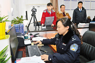 1月3日,西藏拉萨市公德林派出所发放了西藏境内首批异地受理身份证。受理对象主要为在西藏稳定就业、就学、居住的非西藏籍群众。图为户籍民警为群众办理异地身份证业务。