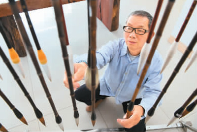 在广西宾阳县宾州镇大罗村,毛笔传统制作工艺代代相传至今已有300多年的历史。图为1月4日,老工艺人罗儒供在检查毛笔质量。