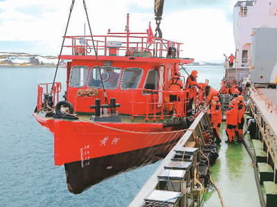当地时间1月4日上午,“雪龙”号科考船抵达距离南极长城站约2公里的麦克斯维尔湾,开始中国第33次南极科考队长城站卸货任务。