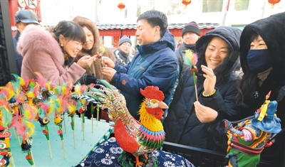 1月5日,辽宁省锦州市凌河区民俗街文化市场人头攒动,人们纷纷选购中国结、挂件、饰品等生肖鸡工艺品,民俗街文化市场购销两旺年味十足。