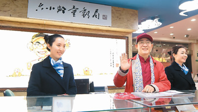 1月5日,首个“六小龄童邮局”在重庆杨家坪步行街开业剪彩。据了解,“六小龄童邮局”是全国第一个以个人名字命名的邮局,其定位为国际文化交流中心、旅游名片、青少年教育基地和主题特色邮局,旨在更好地宣传推广中国传统文化、集邮文化和西游文化。图为“六小龄童”章金莱先生(中)在首个“六小龄童邮局”开业仪式上。