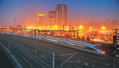 在春运到来之前,自1月5日起全国铁路将实行新的列车运行图,增开旅客列车135对。运行图调整后,全国铁路开行旅客列车总数达3570.5对,其中动车组列车2332.5对。图为一列动车组列车驶出北京南站。