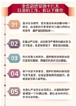 公报指出,坚定旗帜立场、紧盯目标任务,巩固反腐败斗争压倒性态势。全面加强纪律建设,有效运用监督执纪“四种形态”,在加强日常管理监督上下功夫。持续保持高压态势,力度不减、节奏不变,坚决减少腐败存量,重点遏制增量。严肃查处群众身边的不正之风和腐败问题,深化反腐败国际合作。深刻剖析典型案件,忏悔录能公开的都要公开,充分发挥反面教材作用。以强有力问责督促各级党组织履行全面从严治党政治责任。推动各级党组织解决党内政治生活中存在的突出问题,抓住“关键少数”,层层落实责任。严格执行问责条例,加大问责力度,激发担当精神。