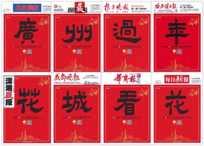 事实上,不仅仅在哈尔滨,当天,国内8个重要城市的主流媒体——北京《北京晨报》、上海《新闻晨报》、南京《扬子晚报》、哈尔滨《哈尔滨日报》、长沙《潇湘晨报》、成都《成都晚报》、西安《华商报》、天津《每日新报》都在重要版面,各自推出一份神秘的“单字谜”。8份报纸首次打破时空界限,“合体”后组成一封完整的邀请函:广州过年,花城看花。