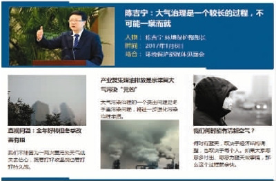 对于公众关注的雾霾,除实录了陈吉宁部长的发布会以外,还配发了《人民日报》的文章《大气污染防治将进一步强化》、《经济日报》的文章《环保部回应大气治理热点问题——产业聚集煤油排放是京津冀大气污染“元凶”》等,从大气污染成因、治理等不同的角度对于部长的回应进行了更为详细的解释。