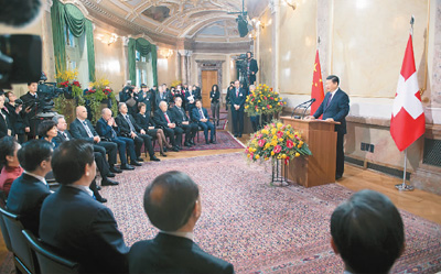1月15日,国家主席习近平出席瑞士联邦委员会全体委员集体举行的迎接仪式并致辞。