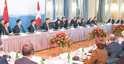 一月十六日,国家主席习近平在伯尔尼同瑞士联邦主席洛伊特哈德共同会见瑞士经济界代表。