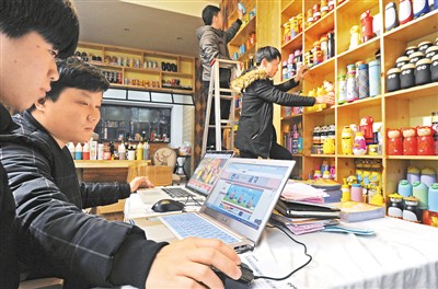 据浙江省商务厅最新统计,浙江2016年实现网络零售10306.74亿元,同比增长35.43%;省内居民网络消费5251.69亿元,同比增长30.89%;网络零售顺差达到5055.05亿元。图为义乌市青岩刘村的一家电子商务公司员工在为网购生意忙碌。