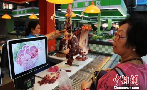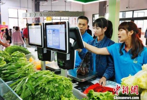 资料图:1月16日,三亚乐天城农贸市场内,摊主在操作智能系统。尹海明 摄
