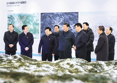 习近平指出,河北省、张家口市要抓住历史机遇,紧密结合实施“十三五”规划,紧密结合推进京津冀协同发展,通过筹办北京冬奥会带动各方面建设,努力交出冬奥会筹办和本地发展两份优异答卷。