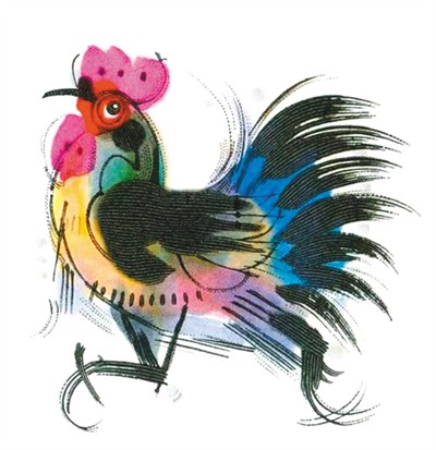 中国邮政发行的《丁酉年》生肖特种邮票中鸡的形象之一,由韩美林创作