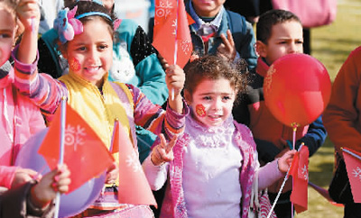 1月20日,在埃及首都开罗,小朋友们参加欢乐春节大庙会活动。