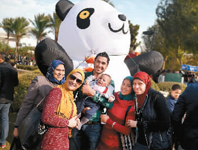 1月20日,在埃及首都开罗,人们在春节大庙会上合影留念。