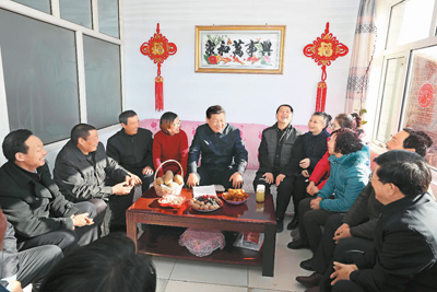 离开光伏电站,习近平先后走进困难群众徐万、徐学海、徐海成家看望。他察看住房、生活设施、年货准备情况,同每家人算收入支出账,对照扶贫手册询问扶贫措施落实得怎么样,家里还有哪些实际困难。