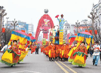 绵竹大街上的大型巡游表演洋溢浓浓年味