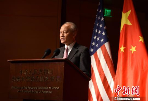 中新网华盛顿1月25日电 (记者 刁海洋)当地时间1月24日晚,中国驻美大使崔天凯在使馆举行春节招待会并致辞。