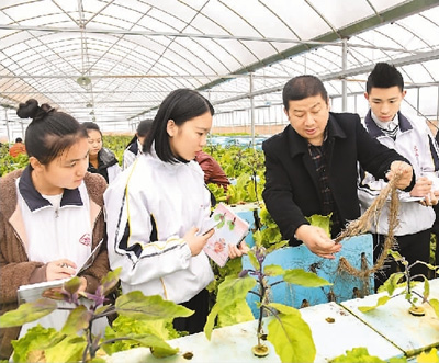 2月6日,江西省新余市第六中学组织该校生物小组的学生来到新余市现代农业科技园,参观各种新奇蔬菜栽培方式及多肉植物,让学生在农业科技园里体验和探讨,用科教实践的方式来培养兴趣、增长见识。图为在现代农业科技园里,“气雾栽培”蔬菜工厂负责人向学生们讲解蔬菜的现代栽培方法。