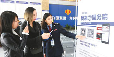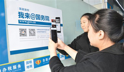 日前,河北省邢台市桥东区国税局开展“简政放权,我来@国务院”推广活动,引导纳税人用手机扫描二维码参加线下互动。