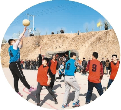 2月4日,村民们在宁夏西吉县吉强镇万崖村进行篮球比赛。