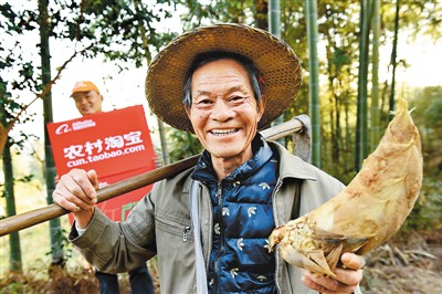 图为去年12月29日,福建省三明市尤溪县管前镇九曲村村民在网上直播展示当地特产冬笋。